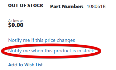 Looking for a part that's currently out of stock? Try our 'Notify Me' feature! Sign into your store account and receive an email when the product is back in stock.