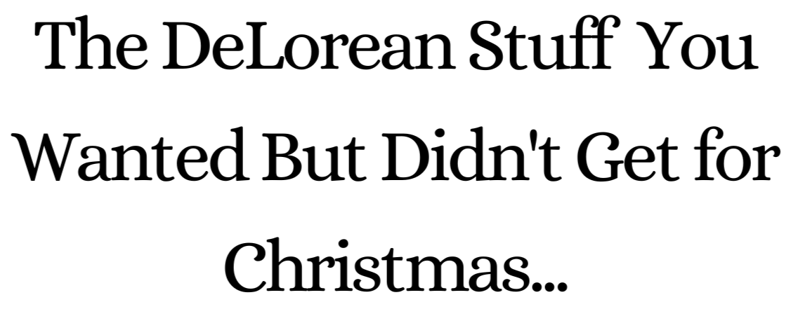 Santa skip your house this year? No need to fret! All the DeLorean stuff you wanted but didn't get for Christmas is still available on our online stores! DeLorean parts, books, accessories, and merch; you name it, we got it!