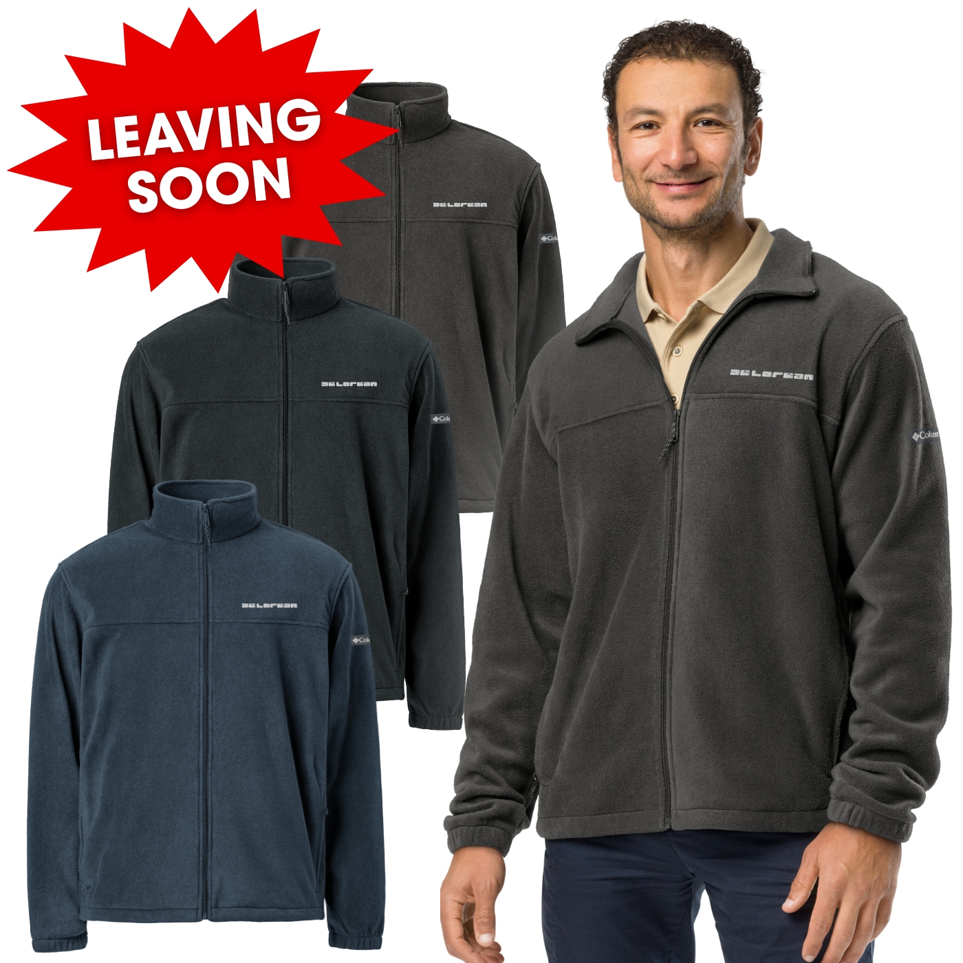 Stay warm and cozy with this DeLorean embroidered logo jacket! Crafted from soft fleece material, this unisex fleece jacket made by Columbia Sportswear envelops you in warmth and comfort, making it the ideal choice for colder weather. Versatile and practical, this jacket can be used for outdoor adventures, casual outings, or simply as a cozy layering piece!